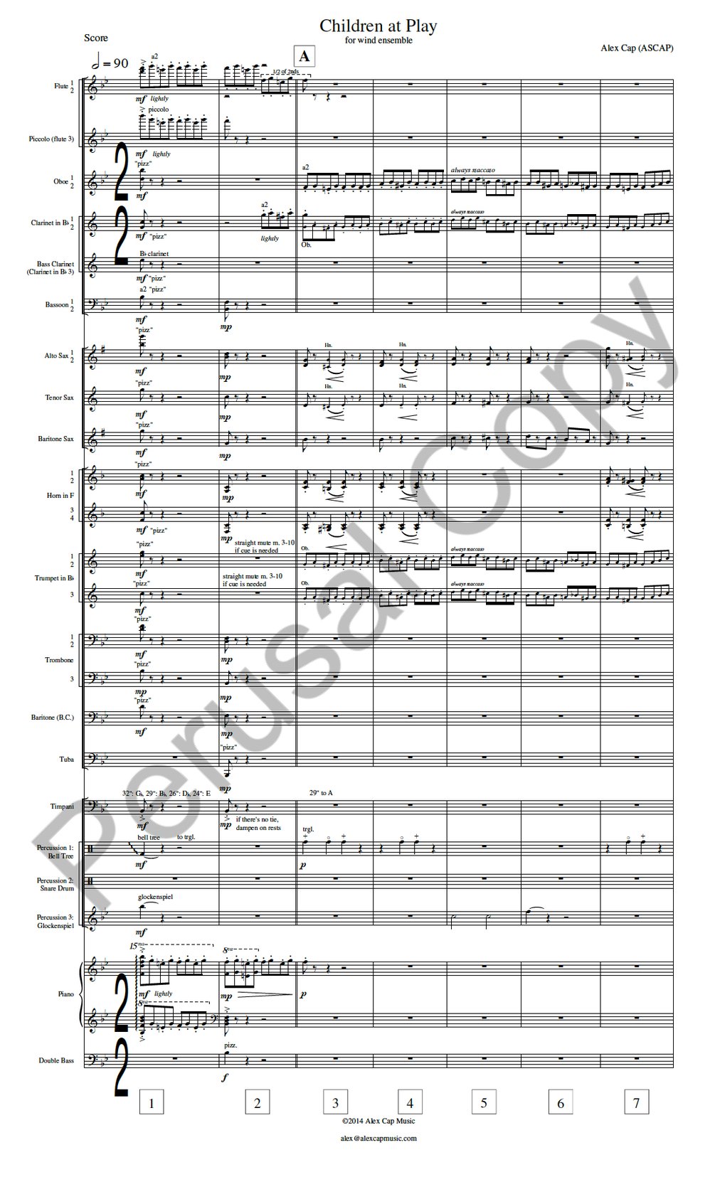 Imagine a group of young children playing on the playground or at the park. They are constantly in motion, usually making noise, and their minds are perpetually jumping from one thought to the next, always seeking the next activity and inventing arbitrary, nonsensical games. You can hear them laugh and poke fun at one another and every once in a while let out a shout of joy and excitement. Similar to the bunch of kids playing outside, the attention span of this piece is just as short and the atmosphere just as whimsical. This piece also echoes my belief that "children's music" need not necessarily be simplistic or even innocent-sounding.